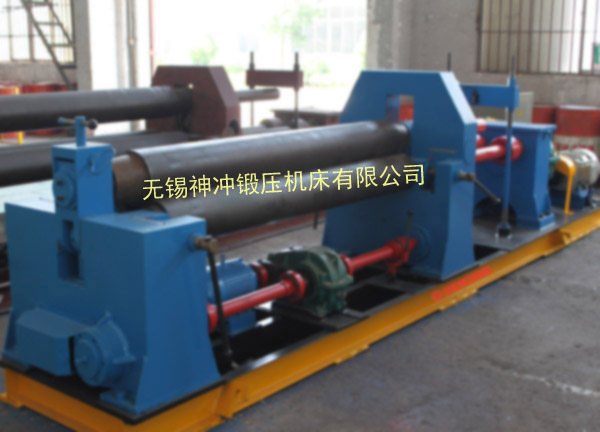 SW11X-B機(jī)械水平下調(diào)式三輥卷板機(jī)的上輥可作升降運(yùn)動(dòng),兩下輥可單獨(dú)或同時(shí)水平移動(dòng),每個(gè)下輥輪流執(zhí)行下輥與側(cè)輥的功能,即先后構(gòu)成兩種非對(duì)稱式三輥卷板機(jī),從薄板到厚板,從預(yù)彎端部到卷圓一次性完成整個(gè)工序,另卷制錐筒極為方便。