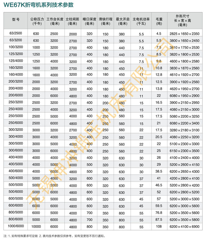 WE67K折彎?rùn)C(jī)型號(hào)對(duì)照表